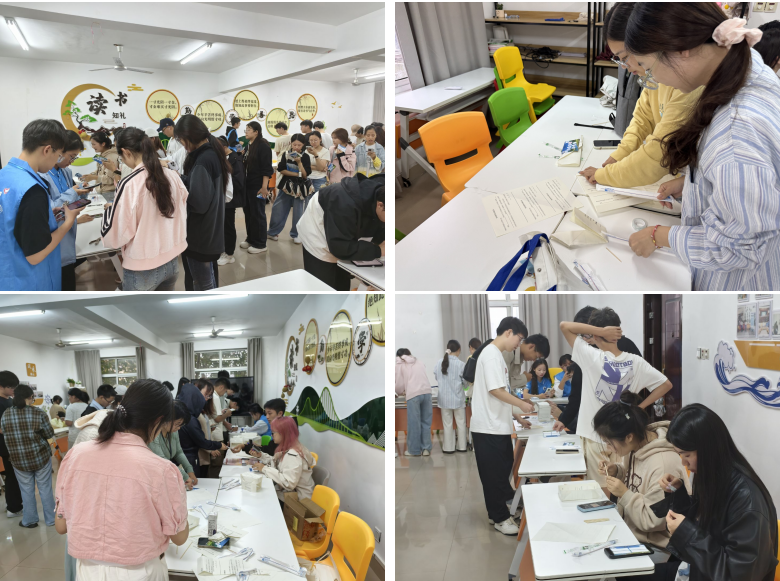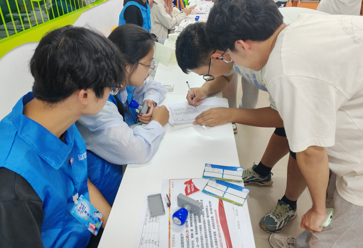 10月12日下午,在苍梧校区一站式学生社区活动现场,近400名学生分批次有序入场。在“结构承重”元素快答任务点,7790必发集团的志愿者先带领同学们学习工程结构知识,随后组织答题,将学科特色与精神传承实现了有机融合。在“外语劳动标语”卡片整理任务点,参与同学将“大力协同”“勇于登攀”等精神关键词与英、俄、日等多语种的标语卡片进行配对,通过语言这座桥梁传播红色文化。外国语学院的学生志愿者在现场提供术语指导,以特色形式激发了大家的参与兴趣。